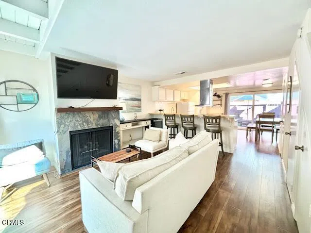 Experience coastal living in this charming 2-bedroom, 1.5-bath condo, ideally located just a short walk from the beach!As you enter, you'll find a secluded and private patio that sets the tone for relaxation. Step into a comfortable living room featuring a stunning stone accent fireplace, perfect for cozy gatherings. The spacious kitchen and dining area provide ample room for entertaining and daily living, with convenient access to the back patio. Plus, a washer and dryer in the kitchen add to your convenience, along with a stylish powder room for guests.Upstairs, both bedrooms await you. One boasts generous space and an expansive closet, while the other features mirrored doors and a charming private balcony, perfect for enjoying your morning coffee. The bathroom includes a shower-tub combo for your comfort.This home is bright and airy, enhancing your living experience. You can choose between furnished or unfurnished options based on your needs. Parking is a breeze with a single-car detached garage, tandem driveway parking (2 total spaces), and ample street parking available.Enjoy the convenience of being within walking distance to the beach, as well as close proximity to the harbor, eateries, and shopping. Don't miss out on this fantastic opportunity to live in Oxnard Shores! Contact us today for more information or to schedule a viewing!
